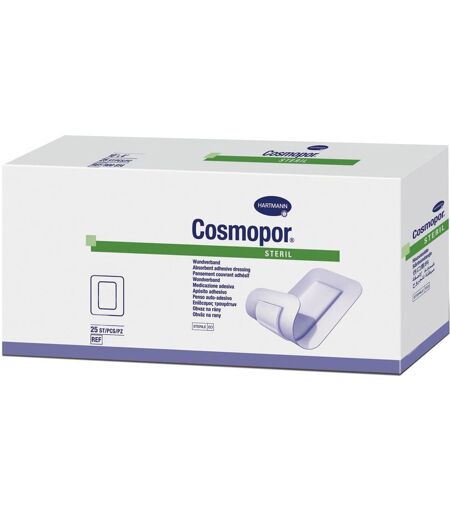 Cosmopor® steril 15 x 15 cm Größe Wundauflage: 15 x 15 cm Bei Cosmopor® Steril handelt es sich um einen selbstklebenden sterilen Wundverband zum Schutz von postoperativen/primär heilenden Wunden und zur Aufnahme von Exsudat (für normal nässende Wunden). Er kann auch zum Schutz von Wunden nach Behandlungen wie Desinfektion, Wundsäuberung, usw. verwendet werden. Weicher und atmungsaktiver Wundverband, selbstklebend Hautfreundlich, kein Verkleben Postoperative Wundversorgung und Bagatellverletzungen Anwendung: Für die postoperative Wundversorgung, aber auch zur sterilen Versorgung von Bagatellverletzungen, z. B. im Rahmen der Ersten Hilfe; bei Patienten mit besonders sensibler Haut. ...
