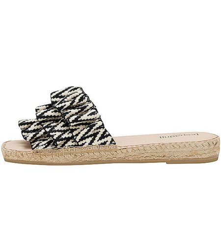 Damen Pantolette aus Textil mit charakteristischer Jute-Sohle Volants sorgen für einen verspielten und romantischen Look zweifarbiger Print Maximaler Tragekomfort durch super weiches und atmungsaktives Fußbett Typische Espadrij Jute Sohle Designed in Deutschland Hergestellt in Spanien Farbbezeichnung: Noir Material: Obermaterial: Textil Decksohle: Mikrofaser Sohle: Typische Espadrij Jute mit wasserabweisendem Naturkautschuk ...