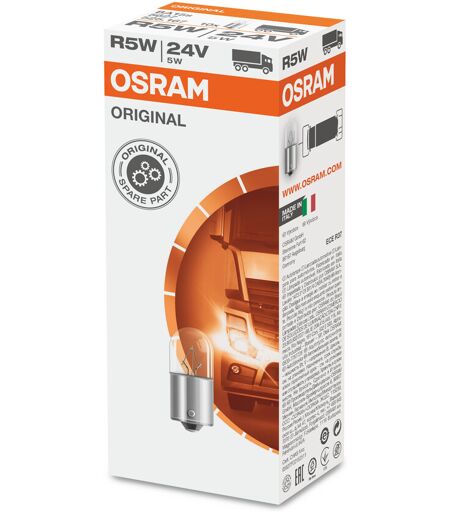OSRAM Glühlampe, Blinkleuchte Spannung [V]:24 V Sockelausführung Glühlampe BA15s Nennleistung [W]:5 W Lampenart R5W , OE-Nummer:HELLA:8GA 002 071-241NEOLUX®:N149PHILIPS:13821CPNARVA:171813000 ...