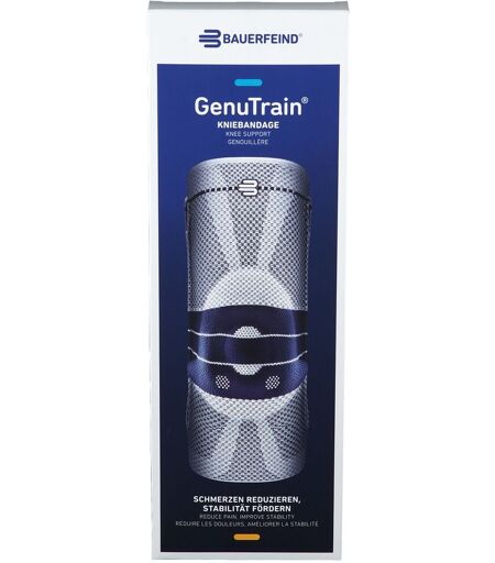 Unbenanntes Dokument Genutrain Knieband sicherer Halt für das Kniegelenk Entlastung der Kniescheibe Schmerzreduktion am Meniskus anatomische Passform integrierte Anziehhilfe Größe: 4 / titan Nettofüllmenge: 1 Stück Herstellerdaten: Bauerfeind AG ...