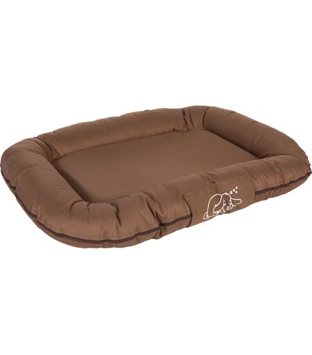 Bei der Strong Soft-Matratze für Hunde ist der Name Programm: Das pflegeleichte Liegekissen zeichnet sich durch robuste sowie strapazierfähige Eigenschaften aus und bietet deinem Hund einen hohen Liegekomfort. Dank des intelligenten Reißverschluss-Systems ist es wendbar und auf beiden Seiten nutzbar. Eine Schaumstoff-Matratze polstert und isoliert die gemütliche Liegefläche, die von einem Rand mit einer Füllung aus hochwertigen Silikonfasern umgeben ist. Das komfortable Liegekissen eignet sich dank des besonders kratzfesten sowie wasser- und schmutzabweisenden Gewebes mit einer inneren wasserdichten Beschichtung sowohl für die Wohnung als auch für den überdachten Outdoor-Bereich. Die braune Hunde-Matratze punktet zudem mit einem schlichten, ovalen Design, das sich in jedes Interieur fügt. Hundematratze Strong Soft im Überblick: Ovales Wendekissen für kleine, mittelgroße bis sehr große Hunde Für den Indoor- und geschützten Outdoor-Bereich geeignet: ideal für Wohnung, überdachte Terrasse oder Balkon Besonders strapazierfähiges, robustes Obermaterial: kratzfest, schmutz- und wasserabweisend Wasserdichte Beschichtung: gummierte Bezug-Innenseiten, ideal bei nassem Fell Intelligente Reißverschluss-Systeme: mittig verlaufend, hoher Liegekomfort auf beiden Seiten; zweiter Reißverschluss unsichtbar im Innern des Bezuges zum Entnehmen der Matratze Hochwertige Polsterungen: PU-Matratze als Liegefläche: schützt vor harten und kalten Böden Rand aus Silikonfasern: hervorragende Stützfunktion, lädt zum entspannten Anlehnen ein Dekoratives Design: niedliches Hundeprint an der Vorderseite Farbe: braun Material: Bezug: 100% Polyester Matratze: 100% Polyurethan (PU-Schaum) Randfüllung: 100% silikonisierte Polyester-Stapelfasern Pflegehinweis: Oberseite feucht abwischbar, Bezug maschinenwaschbar bei 30°C (Schonwäsche) Größentabelle: Gesamtmaße Liegefläche Matratze ca. L 100 x B 70 x H 13 cm ca. L 66 x B 40 cm ca. H 4 cm ca. L 120 x B 90 x H 14 cm ca. L 88 x B 55 cm ca. H 4 cm ca. L 138 x B 110 x H 15 cm ca. L 93 x B 70 cm ca. H 4 cm Wir empfehlen die Verwendung des Waschbeutels XL zur Reinigung: Bei der Reinigung von Haustier-Textilien und -Accessoires erweist sich der Waschbeutel XL als praktischer Helfer. Er verhindert, dass Tierhaare in die Waschmaschine gelangen und mindert das Risiko von Beschädigungen durch harte Elemente wie Schnallen und Reißverschlüssen. Tierhaare bleiben im Innern des Waschbeutels nicht haften, sondern lassen sich nach dem Waschgang einfach herausschütteln. Nähere Informationen zum Waschbeutel XL finden sich hier: Waschbeutel XL Bitte beachten Sie: Die Nähte des Bettes sind trotz wasserdichter Innenbeschichtung wasserdurchlässig, weshalb das Bett nicht auf nassem Boden oder jeglicher Witterung im Freien stehen sollte. ...