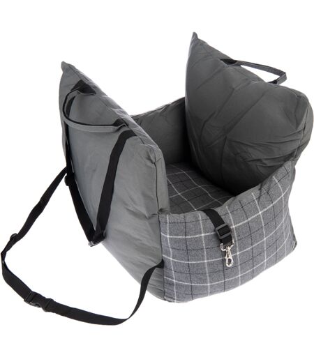 Möchten Sie Ihren Vierbeiner im Auto mitnehmen, soll die Fahrt für Ihren Liebling natürlich möglichst bequem sein. Kein Problem mit dem TIAKI tragbaren Autositz Sleep Travel. Das Bettchen lässt sich unkompliziert auf dem Beifahrersitz befestigen, sofern es sich um einen Sitz mit Kopfstütze handelt. Zum Fixieren des Hundeautositzes nutzen Sie einfach das verstellbare Kopfstützband und das Rückenlehnenband. Lesen Sie dazu die Bedienungsanleitung. Der Sitz bietet dank eines weichen Kissens und gepolsterten Rändern sehr hohen Komfort. Eine integrierte Kurzleine verhindert ein ungewolltes Herausspringen Ihres Hundes. Das Bett schützt die Autopolster zuverlässig vor Haaren und Verschmutzungen. Es kann aber nicht nur im Fahrzeug, sondern auch zu Hause als gemütliches Plätzchen zum Ausruhen dienen. Zudem können Sie den tragbaren Autositz Sleep Travel als Tragetasche für kurze Strecken verwenden. Hier erweisen sich die angebrachten Trageschlaufen als praktisch. Bonus für alle, denen die Umwelt am Herzen liegt: Der hauptsächlich verwendete Stoff wurde aus recycelten Plastikflaschen hergestellt. TIAKI Tragbarer Autositz Sleep Travel im Überblick: Transportables Auto-Bettchen für Hunde Nur für Vordersitze mit Kopfstützen geeignet Multifunktional: als Autositz, Tragetasche sowie Bettchen für zu Hause verwendbar Komfortabel: weiches Kissen dick gepolsterter Rand, anschmiegsamer Velours-Stoff Hauptstoff aus recycelten Plastikflaschen: leistet einen Beitrag zum Umweltschutz Einfach anzubringen: mit verstellbarem Kopfstützband und Rückenlehnenband, welche immer fest fixiert sein müssen Mit integrierter Kurzleine: um Hund im Sitz anzuleinen Praktische Trageschlaufen Schützt die Autositze vor Haaren und Schmutz Herausnehmbares Innenkissen Farbe: grau / kariert Material: Bezug: 100% Polyester, zum Großteil recycelt Füllung: 100% Polyester Boden: Anti-Rutsch-Boden, 100% Polyester Maße: Gesamt: L 50 x B 42 x H 42 cm Liegefläche: L 45 x B 35 cm Pflegehinweis: 30°C maschinenwaschbar, Gurte vor dem Waschen schließen Hinweis: Der Autositz dient lediglich als Körbchen für den Hund, er garantiert keinerlei Sicherheit im Falle eines Unfalls. Verwenden Sie den Autositz nur für den Transport von Hunden auf dem Vordersitz wenn der Sitz durch das Kopfstützband und Rückenlehnenband fest fixiert ist und ihr Hund an der integrierten Kurzleine angeleint ist. Bitte beachten Sie, dass der Artikel leicht vakuumisiert geliefert wird, daher kann es zu Falten im Stoff kommen, die sich jedoch im Laufe der Zeit wieder glätten. ...