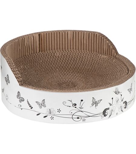 Eine tolle Ergänzung zu deinem Kratzbaum bietet das Kratzmöbel Relax mit seinem hübschen, schwarz-weißen Schmetterlingen und Blumen. Gleichzeitig bekommt deine Samtpfote mit dem Kratzmöbel Relax ein gemütliches Bettchen, auf dem sie stundenlang faulenzen und dösen kann. Dank des großen Durchmessers finden hier auch große Katzen viel Platz, um es sich bequem zu machen. Noch anziehender für deine Katze wird das Kratzmöbel durch Bestreuen mit der mitgelieferten Katzenminze. Sie werden sehen, dein Liebling ist nicht mehr von dem Kratzmöbel wegzubekommen. Nach der Krallenpflege wird er sich in der gemütlichen Schale niederlassen und von großen Abenteuern träumen. Ist das Kratzmöbel Relax irgendwann stark abgenutzt, kann es umweltfreundlich über den Papiermüll entsorgt und wieder verwertet werden. Kratzmöbel Relax im Überblick: Rundherum bedruckt: schwarze Schmetterlinge und Blumen auf weißem Untergrund Leichtes Material (Wellpappe), dennoch robust und langlebig Optimale Ergänzung zum Kratzbaum Mit Katzenminze (Catnip) Umweltfreundliche Entsorgung Maße: Gesamt: Ø 39 cm x H 14,5 cm Rand: B 2 x H 14,5 cm Liegeschale: Höhe außen 9 cm, mittig 4 cm Hinweis: Nur für den Innenbereich. ...
