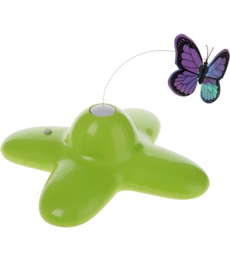 Flatterspaß im Wohnzimmer: Das Katzenspielzeug Funny Butterfly heizt Ihrem Stubentiger mit seiner unvorhersehbaren Flugbahn und wildem Flügelschlagen mächtig ein und sorgt für jede Menge Action in Ihrem Heim. Ein Knopfdruck und ein leichtes Anschubsen genügen, schon fängt der Schmetterling an sich im Kreis zu bewegen und zu flattern. Der dünne Draht, an dem der schimmernde Schmetterling befestigt ist, wird batteriebetrieben in Bewegung gesetzt und zittert leicht, so dass ein authentisches Flugverhalten echter Schmetterlinge in der Natur imitiert wird. Auf diese Weise stimuliert das Spielzeug den natürlichen Jagdtrieb Ihrer Fellnase und regt zum Fangen und Hinterherjagen ein. Der grüne Standfuß ist breit und schwer, so dass er auch bei ausgelassenen Attacken auf die fliegende Beute nicht verrutscht. Der Bewegungsmechanismus stoppt automatisch nach ca. 3 Minuten und kann jederzeit durch Knopfdruck wieder aktiviert werden. Ein ganz besonderes Spielzeug, das jedem kleinen Schmuse-Raubkätzchen viel Spaß und Bewegung beschert. Katzenspielzeug Funny Butterfly im Überblick: Lustiges Spielzeug für Katzen Mit flatterndem Schmetterling: batteriebetriebener, bunt-schimmernder Schmetterling fliegt im Kreis und imitiert Flügelschlag wie in der Natur Aktiviert Jagd- und Spieltrieb: Flug- und Flatterbewegungen regen zum Jagen und Fangen an Einfache Handhabung: durch Knopfdruck und leichtes Anschubsen in Aktion zu setzen Automatische Abschaltung nach ca. 3 Minuten Sicherer Stand: breiter, schwerer Fuß sorgt für Standfestigkeit Hoher Spaß-Faktor: Flattern und Fliegen garantiert Action und Bewegung im Haus Batterien: 3 x AA (1,5 V), nicht im Lieferumfang enthalten 4 Schmetterlinge im Lieferumfang enthalten Ersatz-Schmetterlinge 4 Stück im Set sind nachbestellbar Farbe: Schmetterling: lila- oder gelb-schimmernd Standfuß: grün Material: Kunststoff Maße: Schmetterling: L 5,5 x B 7,5 cm Draht: ca. L 20 cm Standfuß: L 25 x B 25 x H 8 cm Ersatzschmetterlinge für das Katzenspielzeug Funny Butterfly im Überblick: Bunt schimmernde Schmetterlinge am dünnen Draht Farbe: lila- oder gelb-schimmernd Material: Kunststoff / Metall Maße: Schmetterling: L 5,5 x B 7,5 cm Draht: ca. L 20 cm Inhalt: 4 Ersatz-Schmetterlinge im Set Hinweis: Wie bei jedem anderen Produkt sollten Sie Ihr Tier bei der Beschäftigung mit diesem Spielzeug beaufsichtigen. Bitte überprüfen Sie das Produkt regelmäßig auf Schäden und ersetzen Sie das Spielzeug, wenn es defekt ist oder wenn Teile verloren gehen, da ansonsten eine Verletzung des Tieres nicht ausgeschlossen werden kann. Hinweis: Bitte beachten Sie die speziellen Entsorgungshinweise für Elektro- und Elektronikgeräte und Batterien, welche Sie auf folgender Seite nachlesen können: https://www.zooplus.de/info/legal/disposal Dieses Produkt wurde bereits von unseren Zooplus-Pets getestet und mit dem „pet proofed“-Siegel als Lieblingsprodukt gekennzeichnet! Was Hugo besonders gut fand, lesen Sie hier. ...