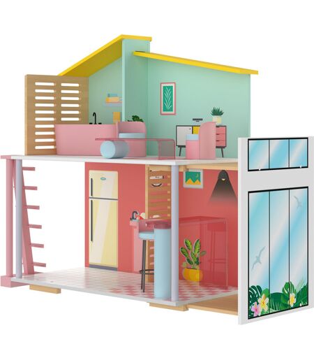 Fördert Fantasie und Rollenspielvermögen Großer Spielspaß auf 2 Etagen mit herausziehbarer Terrasse Stabile Holzkonstruktion mit großzügigen Spielflächen Mit 7 Einrichtungsgegenständen aus Holz und Kunststoff für Küche; Bad und Wohnzimmer und einer frei einsetzbaren Treppe Für 30 cm große Fashion Dolls geeignet 8-teilig Altersempfehlung: ab 3 Jahren Material Holz, Kunststoff Maße Haus: ca. B 59 x H 66 x T 30 cm Terrassenfläche: ca. B 17 x H 40 x T 23 cm Gewicht ca. 6 kg Warnhinweise Achtung! Nicht für Kinder unter 36 Monaten geeignet. Erstickungsgefahr, da kleine Teile verschluckt oder eingeatmet werden können ...