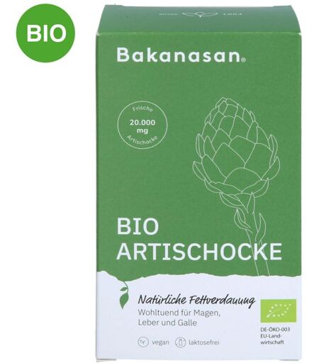 Anwendungsgebiet von Bakanasan Bio Artischocke KapselnHektik, Stress sowie schwere und fettreiche Speisen oder auch Alkohol können für das Leber-Galle-System und unseren Magen sehr belastend sein. Als Folge kann das allgemeine Wohlbefinden spürbar beeinträchtigt werden. Da ist es gut, dass es in der Natur einen pflanzlichen Verdauungshelfer gibt. Die Artischocke verfügt über wertvolle Bitterstoffe, womit die natürliche Fettverdauung unterstützt wird - besonders bei schweren und fettreichen Speisen. Eine Kapsel beinhaltet 300 mg Artischockenblätter-Extrakt aus kontrolliert biologischem Anbau, hergestellt aus ca. 20.000 mg frischer Artischocke. Der standardisierte Extrakt enthält mindestens 7,5 mg des Bitterstoffs Cynarin, der sich vor allem in den Blättern konzentriert.Wirkstoffe / Inhaltsstoffe / ZutatenZutaten von Bakanasan Bio Artischocke Kapseln: Bakanasan Bio Artischocke Kapseln können in Ihrer Versandapotheke www.juvalis.de erworben werden. ...