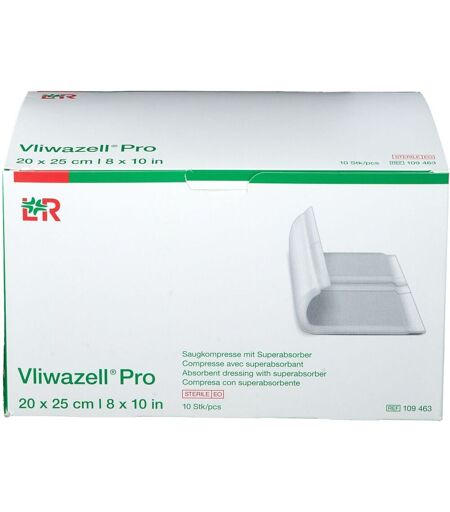 Vliwazell® Pro 20 x 25 cm Größe Wundauflage: 20 x 25 cm Vliwazell Pro ist eine Saugkompresse mit superabsorbierenden Eigenschaften zur Versorgung von mittel bis sehr stark exsudierenden Wunden, auch unter Kompression. Durch eine schnelle Aufnahme und einer gleichmäßigen Verteilung von Exsudat wird das Risiko von Mazerationen der Wunde und Wundumgebung reduziert.* Die sehr hohe Absorptionskapazität ermöglicht lange Verbandwechselintervalle mit langen Wundruhephasen.* Des Weiteren besitzt Vliwazell Pro einen formstabilen Kern, welcher auch bei vertikaler Anwendung formbeständig bleibt. Zusätzlich werden Kleidung und Bettwäsche durch den praktischen Wäscheschutz vor Durchnässung geschützt. sehr starke Saugleistung sehr hohe Absorptionskapazität (auch unter Kompression) atraumatischer Verbandwechsel*) hohes Rückhaltevermögen stabile Formbeständigkeit führt zu einem erhöhten Patientenkomfort leichte Anmodellierbarkeit und Fixierung praktischer Wäscheschutz schützt Kleidung und Bettwäsche vor Durchnässung ...
