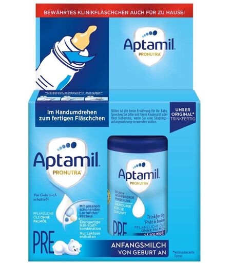 Milupa Aptamil Pre ist eine Babymilchnahrung, als alleinige Nahrung oder zum Zufüttern.