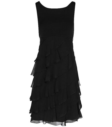 Kleid für besondere Anlässe Fließende Chiffonqualität in Volantbahnen U-Boot-Ausschnitt / Ärmellos Körpernahe Passform Reißverschluss an der Seitennaht Farbbezeichnung: Black Glänzendes Satinfutter Überknielänge Maße: ca. 99cm Material: 100% Polyester Futter: 97% Polyester 3% Elasthan ...