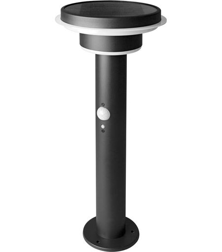 Solarbetriebene Laternenleuchten mit Bewegungs-und Lichtsensoren, zwei Leuchtringe. Produkteigenschaften: Solarbetriebene LED-Außenleuchten, PIR-Bewegungsmelder und Tageslichtsensor, 3 Betriebsarten wählbar, Betriebsart 1: Dauerlicht mit 200 Lumen (max. 2.5 Stunden bei voller Batterieladung), Betriebsart 2: Dauerlicht mit 75 Lumen (max. 8 Stunden bei voller Batterieladung), schaltet bei Bewegung auf 300 Lumen (max. 100 Schaltungen bei voller Batterieladung), Betriebsart 3: Licht aus, schaltet bei Bewegung auf 400 Lumen (max. 100 Schaltungen bei voller Batterieladung), Batterieaufladung mittels Solarzelle, Batterietechnologie: Lithium-Ionen, Gehäuse aus Edelstahl, Produktvorteile: Bedarfsgerechte Beleuchtung und Energieeinsparung mittels Bewegung- und Tageslichtsensor, Einfache Einstellung von Tageslicht- und Bewegungserkennung über Knopfdruck, Energieeffizient durch LED-Technik, Einfache und schnelle Installation, Anwendungsgebiete: Außenanwendung (IP44), Bereiche, in denen kein Stromanschluss verfügbar ist, Technische Ausstattung: Vollständiges Montage- und Anschlusszubehör enthalten, Technische Daten: Länge: 178 mm, Breite: 178 mm, Höhe: 400 mm, Durchmesser: 178 mm, Nettogewicht: 720 g, Nennspannung: 3 V, Nennstrom: 1700 mA, Bemessungsleistung: 6 W, Energieverbrauch: 6 kWh/1000, Farbtemperatur: 3000 K, Lichtfarbe: Warm weiß, Lichtstrom: 400 lm, Farbwiedergabe: 80 CRI, Lebensdauer: 50000 h, Schaltzyklen: 12500, Dimmbar: Ja, Material: Edelstahl, Farbe: Schwarz, EAN: 4058075392748 ...