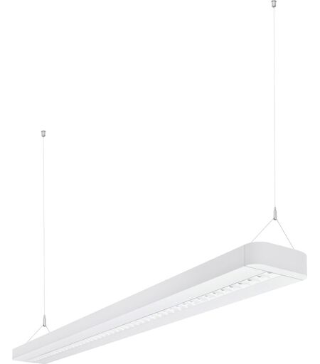 Hängeleuchte für Einzel- oder Lichtbandanwendungen. Produkteigenschaften: Jede LED mit individueller Linse und Reflektor für UGR, Technische Daten: Länge: 1488 mm, Breite: 120 mm, Höhe: 40 mm, Nettogewicht: 3200 g, LED-Typ: SMD, Nennspannung: 240 V, Nennstrom: 320 mA, Bemessungsleistung: 56 W, Energieverbrauch: 56 kWh/1000, Farbtemperatur: 4000 K, Lichtfarbe: Kalt weiß, Abstrahlwinkel: 70 °, Lichtstrom: 6550 lm, Farbwiedergabe: 80 CRI, Lebensdauer: 60000 h, Schaltzyklen: 100000, Energieeffizienzklasse: E, Dimmbar: Nein, Material: Aluminium, Farbe: Weiß, EAN: 4058075110441 ...