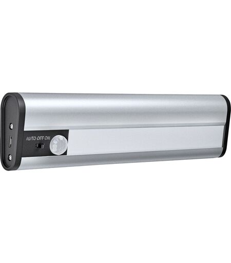 Unterbauleuchte für flexible Montage mit Bewegungssensor, batteriebetrieben, wiederaufladbar. Produkteigenschaften: Gehäusematerial: Aluminium, Integrierter Licht- und Bewegungssensor, Schalter für Auto- oder An/Aus-Modus, Über USB-Kabel wiederaufladbarer Akku, Produktvorteile: Attraktives und funktionales Design, Sparsamer Betrieb durch geringe Leistungsaufnahme, Einfache und schnelle Installation, Anwendungsgebiete: Erschliessen ein sehr weites Einsatzspektrum, Nur für Innenraumbeleuchtung, Regale, Möbelintegration oder Unterbau, Technische Ausstattung: Erforderliches Zubehör enthalten, Technische Daten: Länge: 200 mm, Breite: 50 mm, Höhe: 22 mm, Nettogewicht: 212 g, Nennspannung: 5 V, Bemessungsleistung: 1 W, Energieverbrauch: 1 kWh/1000, Farbtemperatur: 4000 K, Lichtfarbe: Kalt weiß, Abstrahlwinkel: 120 °, Lichtstrom: 69 lm, Farbwiedergabe: 80 CRI, Lebensdauer: 25000 h, Schaltzyklen: 12500, Energieeffizienzklasse: G, Dimmbar: Nein, Material: Aluminium, Farbe: Silber, EAN: 4058075260436 ...