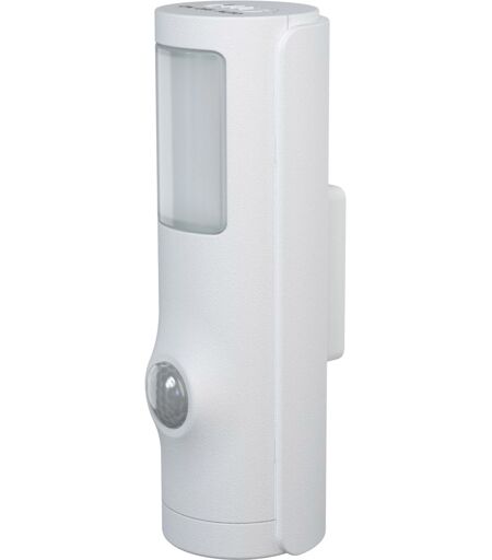 Nachtlichter mit Bewegungssensor und Taschenlampenfunktion, batteriebetrieben. Produkteigenschaften: Integrierter Licht- und Bewegungssensor, Verfügbar in zwei Gehäusefarben, Schalter für Auto- oder An/Aus-Modus, Schutzart: IP54, Produktvorteile: Attraktives und funktionales Design, Sparsamer Betrieb durch geringe Leistungsaufnahme, Einfache und schnelle Befestigung auf fast jeder Oberfläche (Klebestreifen oder Schrauben), Zubehör für flexible Montagemöglichkeiten enthalten, Mobil einsetzbar durch Herausnahme aus der Halterung, Anwendungsgebiete: Erschliessen ein sehr weites Einsatzspektrum, Innen- und Außenbereich, Ideal für zuhause und unterwegs geeignet, Technische Ausstattung: Batterien enthalten: 3x1.5 V LR03 (AAA), Technische Daten: Länge: 195 mm, Breite: 140 mm, Höhe: 45 mm, Nettogewicht: 95 g, Nennspannung: 4 V, Nennstrom: 77 mA, Bemessungsleistung: 0,35 W, Energieverbrauch: 0,35 kWh/1000, Farbtemperatur: 4000 K, Lichtfarbe: Kalt weiß, Lichtstrom: 10 lm, Farbwiedergabe: 80 CRI, Lebensdauer: 25000 h, Schaltzyklen: 10000, Dimmbar: Nein, Material: Polycarbonat (PC), Farbe: Weiß, EAN: 4058075260696 ...