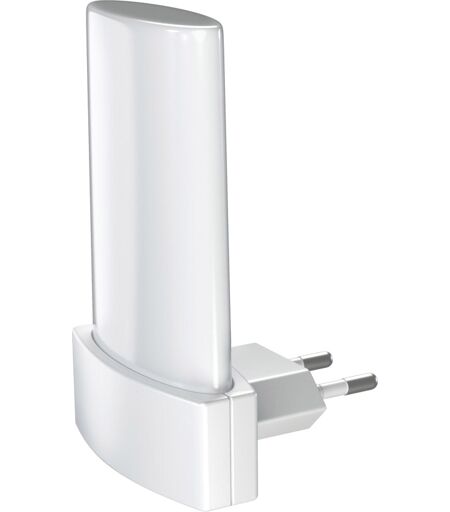 Steckdosen-Nachtlicht mit RGB-Farbeinstellung und Tageslichtsensor. Produkteigenschaften: Integrierter Tag-/Nacht-Sensor, Direkter Netzanschluss an 220…240 V, Farbwechsel, RGB-Farbsteuerung, Produktvorteile: Attraktives und funktionales Design, Plug-and-Play durch EU-Stecker, Automatisches Ein- und Ausschalten abhängig vom Tageslicht, Anwendungsgebiete: Kinderschlafzimmer, Dekorative Wohnbeleuchtung, Nur für Innenraumbeleuchtung, Technische Daten: Länge: 60 mm, Breite: 60 mm, Höhe: 90 mm, Nettogewicht: 40 g, Nennspannung: 240 V, Nennstrom: 24 mA, Bemessungsleistung: 0,28 W, Energieverbrauch: 0,28 kWh/1000, Farbtemperatur: 6000 K, Lichtfarbe: Rot Grün Blau, Farbwiedergabe: 80 CRI, Lebensdauer: 25000 h, Schaltzyklen: 10000, Dimmbar: Nein, Material: Polycarbonat (PC), Farbe: Weiß, EAN: 4058075266841 ...
