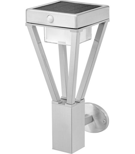 Solarbetriebene Wand- und Pollerleuchten mit Bewegungs- und Lichtsensoren. Produkteigenschaften: Solarbetriebene LED-Außenleuchten, PIR-Bewegungsmelder und Tageslichtsensor, 3 Betriebsarten wählbar, Betriebsart 1: Dauerlicht mit 200 Lumen (max. 2.5 Stunden bei voller Batterieladung), Betriebsart 2: Dauerlicht mit 75 Lumen (max. 8 Stunden bei voller Batterieladung), schaltet bei Bewegung auf 300 Lumen (max. 100 Schaltungen bei voller Batterieladung), Betriebsart 3: Licht aus, schaltet bei Bewegung auf 550 Lumen (max. 100 Schaltungen bei voller Batterieladung), Batterieaufladung mittels Solarzelle, Batterietechnologie: Lithium-Ionen, Gehäuse aus Edelstahl, Produktvorteile: Bedarfsgerechte Beleuchtung und Energieeinsparung mittels Bewegung- und Tageslichtsensor, Einfache Einstellung von Tageslicht- und Bewegungserkennung über Knopfdruck, Energieeffizient durch LED-Technik, Einfache und schnelle Installation, Anwendungsgebiete: Außenanwendung (IP44), Bereiche, in denen kein Stromanschluss verfügbar ist, Technische Ausstattung: Vollständiges Montage- und Anschlusszubehör enthalten, Technische Daten: Länge: 180 mm, Breite: 150 mm, Höhe: 365 mm, Nettogewicht: 1020 g, Nennspannung: 3 V, Bemessungsleistung: 6 W, Energieverbrauch: 6 kWh/1000, Farbtemperatur: 3000 K, Lichtfarbe: Warm weiß, Lichtstrom: 550 lm, Farbwiedergabe: 80 CRI, Lebensdauer: 25000 h, Schaltzyklen: 12500, Dimmbar: Nein, Material: Aluminium, Farbe: Edelstahl, EAN: 4058075564503 ...