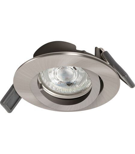 Deckeneinbauleuchte mit GU10-Lampe inklusive und Twistlock-System. Produkteigenschaften: GU10 Lampe enthalten, Gehäusematerial: Metall, Produktvorteile: Osram Lampe inklusive, Twistlock-System, Lenkbar, Anwendungsgebiete: Innenraumanwendungen, Korridore, Eingangsbereiche, Treppenhäuser, Wohnzimmer, Keller, Schlafzimmer, Küchen, Technische Ausstattung: Vollständiges Montage- und Anschlusszubehör enthalten, Technische Daten: Länge: 88,50 mm, Breite: 88,50 mm, Höhe: 112 mm, Durchmesser: 88,50 mm, Nettogewicht: 170 g, Sockel: GU10, Nennspannung: 240 V, Nennstrom: 38 mA, Bemessungsleistung: 4,30 W, Energieverbrauch: 4,30 kWh/1000, Farbtemperatur: 2700 K, Lichtfarbe: Warm weiß, Abstrahlwinkel: 36 °, Lichtstrom: 350 lm, Farbwiedergabe: 90 CRI, Lebensdauer: 15000 h, Schaltzyklen: 100000, Dimmbar: Nein, Material: Aluminium, Farbe: Brushed nickel, EAN: 4058075573017 ...