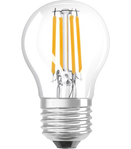 Klassische Miniballform mit Bluetooth-Technologie. Produkteigenschaften: LED-Lampe mit intelligenter kabelloser Steuerungstechnik, Steuerbar über LEDVANCE SMART+ App (mit mindestens Android 6.0 oder iOS 11.0), Für vollen Funktionsumfang bei Steuerung über Apple Home App Verbindung mit Apple TV (ab tvOS 10) oder iPad (ab iOS 10) notwendig, Dimmbar, Netzwerkprotokoll: Bluetooth, Lebensdauer: bis zu 15.000 h, Dein Smart Home hört aufs Wort – Nutze Google Assistant und steuere dein Licht per Sprachbefehl, Produktvorteile: Lampen mit innovativer LED-"Filament"-Technologie, Einfache Installation und Nutzung, Bis zu 80 % weniger Energieverbrauch gegenüber Halogenlampen, Enthält kein Quecksilber, Anwendungsgebiete: Allgemeinbeleuchtung, Außenanwendungen nur in geeigneten Leuchten, Technische Ausstattung: Für Steuerung über LEDVANCE SMART + App Android-Smartphone (ab Android 6.0) erforderlich, Für Steuerung über Apple Home App iPhone (ab iOS 10), iPad (ab iOS 10), Apple TV (ab tvOS 10) oder Apple Watch (ab watchOS 2) erforderlich, Technische Daten: Länge: 118 mm, Breite: 35 mm, Durchmesser: 35 mm, Nettogewicht: 26 g, Sockel: E27, Nennspannung: 240 V, Nennstrom: 35 mA, Bemessungsleistung: 4 W, Energieverbrauch: 4 kWh/1000, Farbtemperatur: 2700 K, Lichtfarbe: Warm weiß, Abstrahlwinkel: 300 °, Lichtstrom: 470 lm, Farbwiedergabe: 80 CRI, Lebensdauer: 15000 h, Schaltzyklen: 100000, Energieeffizienzklasse: E, Dimmbar: Ja, Farbe: Transparent, EAN: 4058075609679 ...