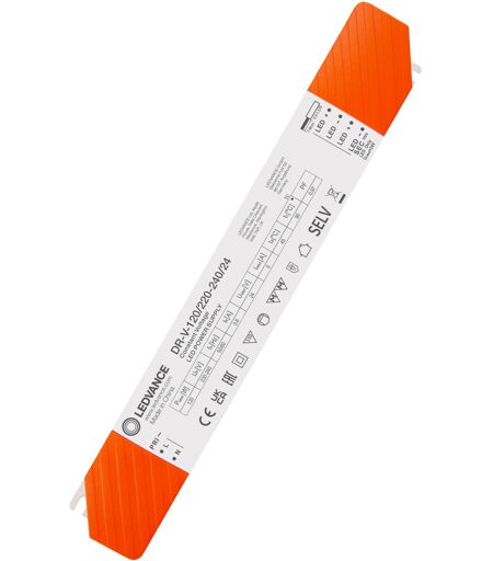 LEDVANCE DR-V -120/220-240/24: Produktvorteile: Optimiert für den Betrieb mit 24 V flexiblen LED-Lichtband, Hervorragendes Preis-Leistungs-Verhältnis, 3 Jahre Garantie, Schnelle und einfache Montage, Gute Effizienz und Zuverlässigkeit, Anwendungsgebiete: Voutenbeleuchtung, auch bei beengten Platzverhältnissen, Wallwasher-Effektbeleuchtung in Wohnräumen, Esszimmern, Schlafzimmern, Eingangsbereichen, Für SELV-Installationen in Innenräumen, Büros, Einkaufszentren, Krankenhäuser, Restaurants, Hotels, Produkteigenschaften: Verfügbar in 30 W, 60 W, 120 W und 150 W, Integrierte Kabelklemme für unabhängige Installation, Lebensdauer: bis zu 35.000 h (bei max. tc Temperatur), Schutzart: IP20, Versorgungsspannung: 220…240 V, Betriebsfrequenz: 50/60 Hz, Betrieb mit weniger als 60 V: Sicherheitskleinspannung (SELV), Reversibler Übertemperatur-, Überlast-, Kurzschluss- und Arbeitsstromschutz, Referenzen / Verweise: Zur Garantie siehe www.ledvance.de/garantie, Technische Daten: Länge: 253 mm, Breite: 40 mm, Höhe: 31 mm, Gewicht: 345 g, Nennspannung: 240 V, Nennleistung: 120 W, Nennstrom: 800 mA, Energieverbrauch: 120 kWh/1000, Dimmbar: Nein, Lebensdauer: 35000 h, Schutzart: IP20, Material: Kunststoffgehäuse, Ausführung: statisch, Dimmung Phasenabschnitt: nein, Dimmung Phasenanschnitt: nein, Dimmung Touch and Dim: nein, Dimmung Zigbee: nein, Konstant-Lichtstrom-Regelung: nein, Geeignet für Konstantstrom: nein, Geeignet für Konstantspannung: ja, Geeignet für Gleichspannung (Primärseite): nein, Schutzklasse nach IEC 61140: II, Bedienung über Bluetooth: nein, Kompatibel mit Apple HomeKit: nein, Kompatibel mit Google Assistant: nein, Kompatibel mit Amazon Alexa: nein, Kompatibel mit Casambi: nein, IFTTT-Unterstützung verfügbar: ja ...