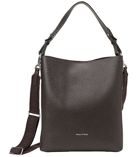 Damen Hobo Bag aus Kalbsleder Genarbtes Leder Mit Schultergurt aus Gewebe Tragehenkel Großes Hauptfach Logo Detail Maße: Ca: 30x34x10 cm Farbbezeichnung: Dark Earth Material: 100% Leder Die Marke Marc O`Polo ist Mitglied der Fair Wear Foundation. ...