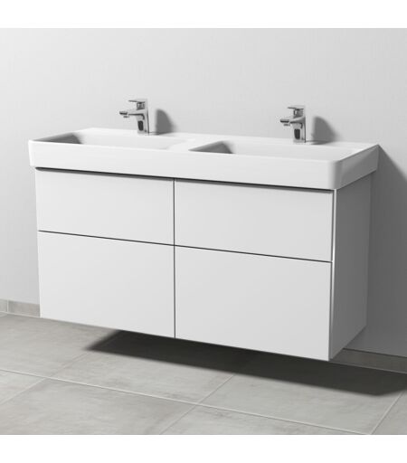 "Sanipa 3way Waschtischunterbau zu Laufen Pro S Waschtisch mit 4 Auszügen, Weiß-Soft, BR78743 3way Das Bad wird zur Bühne - Sie führen Regie beim Spiel mit Formen, Farben und Größen. Drei Waschtisch-Materialien, drei Arten von Schrankmodellen und drei mögliche Griffvarianten bieten viele Lösungen, um die Geschichte zu einem großen Familienbad oder über ein kleines Gäste-WC zu erzählen. Das durchdachte System von 3way macht mit seinen individuellen Details ein großes Werk möglich. Der Applaus gehört Ihnen. Das bietet 3way: Breite Auswahl an Waschtischen in Größe und im Material mit passendem Unterbau im Set Unterbauten zu zahlreichen Waschtischen verschiedener Hersteller wählbar Grifflose Fronten mit seitlicher Griffleiste zum Öffnen und als Designmerkmal, optional klassisch mit Stangengriff Eleganter Aufsatzgriff oder grifflos mit Push to open Technik Praktische Stauraummöbel mit integriertem Wäschekorb oder Ganzkörperspiegel und Regalelemente Einzelne Beimöbel in zwei verschiedenen Tiefen Produktdetails: Griffleiste links und rechts in Chrom Grifflose Fronten mit seitlicher Griffleiste zum Öffnen und als Designmerkmal 4 Metall-Vollauszüge Auszüge mit Selbsteinzug für leichten Lauf und sanftes Schließen Auszüge mit rutschhemmendem Boden Obere Auszüge mit eckigem Siphonausschnit Innenfarbe Auszüge: Anthrazit Passender Waschtisch: Laufen Pro S Keramik-Waschtisch, Breite 120,0 cm (8149 66) Zusatzinformationen: Waschtisch nicht im Lieferumfang enthalten, bitte separat bestellen Griffleiste optional auch in Schwarz-Matt erhältlich Waschtischunterbau optional auch klassisch mit Stangengriffen erhältlich Zum Öffnen bitte seitlich links und rechts Wandabstand einplanen Farb- und Strukturabweichungen in den Abbildungen möglich weitere Produktdetails: Breite(cm): 115 Höhe(cm): 59,3 Tiefe(cm): 43,7 Gewicht (kg): 43,13 Material Korpus: Spanplatte Material Front: Spanplatte Material Griff: Metall Oberfläche Korpus: Melamin Oberfläche Front: Melamin Farbe Korpus: Weiß-Soft Farbe Front: Weiß-Soft Farbe Griff: Chrom Griff: mit Griffleiste Öffnungsart: Mit Auszug Montage: Wandmontage Montagezustand: Montiert Lieferumfang: Waschtischunterschrank, Befestigung Einbauart Waschtisch: Für Doppelwaschtische Besonderheiten: Beleuchtung: Ohne Beleuchtung Über den Hersteller Sanipa: Das Unternehmen Sanipa mit Sitz im fränkischen Treuchtlingen ist eine hundertprozentige Tochter der Villeroy & Boch AG und zählt zu den renommierten Partnern für den Sanitär-Fachhandel. Sanipa setzt auf Produkte, die in bester Handwerkstradition hergestellt werden und fortschrittliche Technik mit aktuellem Design verbinden. Die Badmöbel sind ""made in Germany"" und können individuell an Kundenwünsche angepasst werden." ...