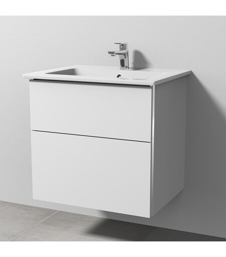 Sanipa 3way Keramik-Set Venticello Keramik-Waschtisch und Unterbau mit 2 Auszügen, Weiß-Soft BR32243