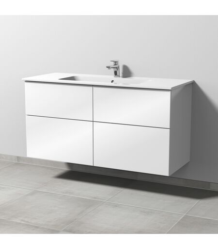 Sanipa 3way Waschtischunterbau zu Duravit ME by Starck Waschtisch mit 4 Auszügen, Weiß-Glanz SF72778