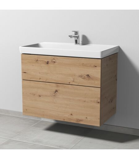 "Sanipa 3way Waschtischunterbau zu Villeroy & Boch Avento Waschtisch mit 2 Auszügen, Eiche Natural-Touch, SM62385 3way Das Bad wird zur Bühne - Sie führen Regie beim Spiel mit Formen, Farben und Größen. Drei Waschtisch-Materialien, drei Arten von Schrankmodellen und drei mögliche Griffvarianten bieten viele Lösungen, um die Geschichte zu einem großen Familienbad oder über ein kleines Gäste-WC zu erzählen. Das durchdachte System von 3way macht mit seinen individuellen Details ein großes Werk möglich. Der Applaus gehört Ihnen. Das bietet 3way: Breite Auswahl an Waschtischen in Größe und im Material mit passendem Unterbau im Set Unterbauten zu zahlreichen Waschtischen verschiedener Hersteller wählbar Grifflose Fronten mit seitlicher Griffleiste zum Öffnen und als Designmerkmal, optional klassisch mit Stangengriff Eleganter Aufsatzgriff oder grifflos mit Push to open Technik Praktische Stauraummöbel mit integriertem Wäschekorb oder Ganzkörperspiegel und Regalelemente Einzelne Beimöbel in zwei verschiedenen Tiefen Produktdetails: Push to open Technik 2 Metall-Vollauszüge Auszüge mit Selbsteinzug für leichten Lauf und sanftes Schließen Auszüge mit rutschhemmendem Boden Oberer Auszug mit eckigem Siphonausschnitt Innenfarbe Auszüge: Anthrazit Passender Waschtisch: Villeroy & Boch Avento Keramik-Waschtisch, Breite 80,0 cm (4156 80) Zusatzinformationen: Waschtisch nicht im Lieferumfang enthalten, bitte separat bestellen Farb- und Strukturabweichungen in den Abbildungen möglich weitere Produktdetails: Breite(cm): 77,6 Höhe(cm): 58 Tiefe(cm): 45,2 Gewicht (kg): 30,82 Material Korpus: Spanplatte Material Front: Spanplatte Material Griff: Oberfläche Korpus: Melamin Oberfläche Front: Melamin Farbe Korpus: Eiche Natural-Touch Farbe Front: Eiche Natural-Touch Farbe Griff: Griff: Ohne Griff Öffnungsart: Mit Auszug Montage: Wandmontage Montagezustand: Montiert Lieferumfang: Waschtischunterschrank, Befestigung Einbauart Waschtisch: Für Wandwaschtische Besonderheiten: Mit Push to open Technik Beleuchtung: Ohne Beleuchtung Über den Hersteller Sanipa: Das Unternehmen Sanipa mit Sitz im fränkischen Treuchtlingen ist eine hundertprozentige Tochter der Villeroy & Boch AG und zählt zu den renommierten Partnern für den Sanitär-Fachhandel. Sanipa setzt auf Produkte, die in bester Handwerkstradition hergestellt werden und fortschrittliche Technik mit aktuellem Design verbinden. Die Badmöbel sind ""made in Germany"" und können individuell an Kundenwünsche angepasst werden." ...
