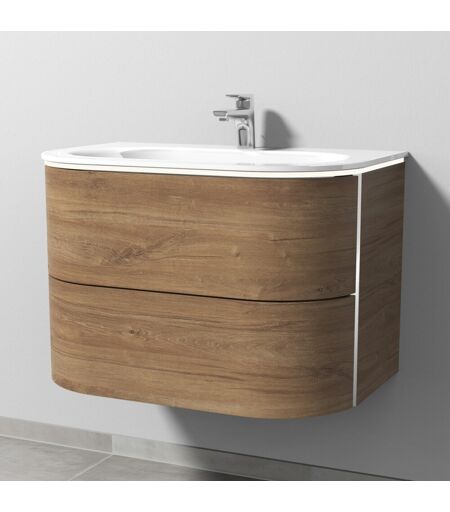 "4balance Gewinner des Red Dot Award: Product Design 2021 Mit 4balance wird Ihr Bad zum Rückzugsort. Weiche, organische Formsprache und klare Linienführung schenken ein Gefühl von Ruhe und Verbundenheit. Die Kombination aus abgerundeten Waschplatz-Sets und geradlinigen Anbaumöbeln hält wohltuende Balance und schafft damit ein harmonisches Gesamtbild. Natürlicher Einklang und wohnliche Wärme. Das bietet 4balance: Organisch geformte Mineralguss-, Glas- und Keramik-Waschtische mit passenden Unterbauten im Set Softe und feine Linienführung Optionales Ambientelicht am Unterbau, 3-stufig dimmbar Waschtisch-Sets: grifflose Fronten mit seitlicher Griffleiste zum Öffnen und als Designmerkmal oder mit zusätzlichem eleganten Aufsatzgriff Beimöbel grifflos mit Push to open Technik oder mit elegantem Aufsatzgriff Abgerundeter Lichtspiegel, perfekt auf die Waschtischform abgestimmt, Montage vertikal und horizontal möglich Sanipa Serie 4balance ist Gewinner des Red Dot Award: Product Design 2021 Waschtisch: Glas-Waschtisch in Optiwhite Tiefe 52,2 cm / Höhe 1,2 cm / Tiefe Beckenkumme 12,0 cm Inkl. verschließbarem Ab- und Überlaufsystem Ventilabdeckung: Kunststoff verchromt Für 1-Loch Armatur geeignet Hahnloch durchgestochen Mit verdecktem Überlauf Materialbeschreibung: Glas ist ein Produkt aus natürlichen Rohstoffen und Substanzen, das im Schmelzverfahren unter größter Hitze erzeugt und geformt wird. Die harte und porenfreie Oberfläche steht für angenehme Haptik und perfekte Hygiene, genauso aber auch für die schöne Optik und ausgefallenes Design. Waschtischunterbau: Gebogene Fronten Griffleiste links und rechts in Chrom Grifflose Fronten mit seitlicher Griffleiste zum Öffnen und als Designmerkmal 2 Metall-Vollauszüge Auszüge mit Selbsteinzug für leichten Lauf und sanftes Schließen Auszüge mit rutschhemmendem Boden Oberer Auszug mit eckigem Siphonausschnitt Innenfarbe Auszüge/Front: Anthrazit Beleuchtung: Umlaufendes Ambientelicht zwischen Waschtisch und Waschtischunterbau Innen im oberen Auszug liegender Touch-Sensor mit Orientierungslicht LED-Beleuchtung mit 12,80 Watt Helligkeit 3-stufig dimmbar Frei einstellbare Lichtfarbe von warmwhite zu coolwhite Kelvin: 2700 K - 6500 K Energieeffizienzklasse: A+ Set besteht aus Glas-Waschtisch und Waschtischunterbau Glas-Waschtisch auf Anfrage auch ohne Armaturbohrung möglich (Mehrpreis und verlängerte Lieferzeit) Waschtisch nur mit Möbel montieren, nicht freitragend Griffleiste optional auch in Schwarz-Matt erhältlich Alle eingebauten Elektroteile sind VDE geprüft und damit sicher für Ihr Bad Farb- und Strukturabweichungen in den Abbildungen möglich weitere Details: Breite (cm): 80 Höhe (cm): 54,7 Tiefe (cm): 52,2 Material Korpus: Spanplatte Material Front: Mitteldichte Faserplatte (MDF) Material Griff: Oberfläche Korpus: Melamin Oberfläche Front: Thermofolie Farbe Korpus: Eiche-Kansas Farbe Front: Eiche-Kansas Farbe Griff: Griff: Mit Griffleiste Öffnungsart: Mit Auszug Montage: Wandmontage Montagezustand: Montiert... ...