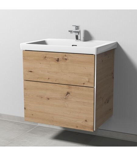 "Sanipa 3way Waschtischunterbau zu Villeroy & Boch Subway 3.0 Waschtisch mit 2 Auszügen, Eiche Natural-Touch 3way Das Bad wird zur Bühne.Sie führen Regie beim Spiel mit Formen, Farben und Größen. Drei Waschtisch-Materialien, drei Arten von Schrankmodellen und drei mögliche Griffvarianten bieten viele Lösungen, um die Geschichte zu einem großen Familienbad oder über ein kleines Gäste-WC zu erzählen. Das durchdachte System von 3way macht mit seinen individuellen Details ein großes Werk möglich. Der Applaus gehört Ihnen. Das bietet 3way: Breite Auswahl an Waschtischen in Größe und im Material mit passendem Unterbau im Set Unterbauten zu zahlreichen Waschtischen verschiedener Hersteller wählbar Grifflose Fronten mit seitlicher Griffleiste zum Öffnen und als Designmerkmal, optional klassisch mit Stangengriff Eleganter Aufsatzgriff oder grifflos mit Push to open Technik Praktische Stauraummöbel mit integriertem Wäschekorb oder Ganzkörperspiegel und Regalelemente Einzelne Beimöbel in zwei verschiedenen Tiefen Produktdetails: Griffleiste links und rechts in Chrom Grifflose Fronten mit seitlicher Griffleiste zum Öffnen und als Designmerkmal 2 Metall-Vollauszüge Auszüge mit Selbsteinzug für leichten Lauf und sanftes Schließen Auszüge mit rutschhemmendem Boden Oberer Auszug mit eckigem Siphonausschnitt Innenfarbe Auszüge: Anthrazit Passender Waschtisch: Villeroy & Boch Subway 3.0 Keramik-Waschtisch, Breite 65,0 cm (4A70 65/66/68) Zusatzinformationen: Waschtisch nicht im Lieferumfang enthalten, bitte separat bestellen Griffleiste optional auch in Schwarz-Matt erhältlich Waschtischunterbau optional auch klassisch mit Stangengriffen erhältlich Zum Öffnen bitte seitlich links und rechts Wandabstand einplanen Farb- und Strukturabweichungen in den Abbildungen möglich weitere Produktdetails: passend zu: Villeroy & Boch Subway 3.0 4A7065 / 4A7066 / 4A7068 Breite (cm): 60,5 Höhe (cm): 58,8 Tiefe (cm): 46,2 Material Korpus: Spanplatte Material Front: Spanplatte Material Griff: Metall Oberfläche Korpus: Melamin Oberfläche Front: Melamin Farbe Korpus: Eiche Natural-Touch Farbe Griff: Chrom Griff: Mit Griffleiste Öffnungsart: B2Mit Auszug Montage: Wandmontage Montagezustand: Montiert Lieferumfang: Waschtischunterschrank, Befestigung Einbauart Waschtisch: Für Wandwaschtische Besonderheiten: Beleuchtung: Ohne Beleuchtung Eingebaute LED: Nein Leuchtmittel: Nein Über den Hersteller Sanipa: Das Unternehmen Sanipa mit Sitz im fränkischen Treuchtlingen ist eine hundertprozentige Tochter der Villeroy & Boch AG und zählt zu den renommierten Partnern für den Sanitär-Fachhandel. Sanipa setzt auf Produkte, die in bester Handwerkstradition hergestellt werden und fortschrittliche Technik mit aktuellem Design verbinden. Die Badmöbel sind ""made in Germany"" und können individuell an Kundenwünsche angepasst werden." ...