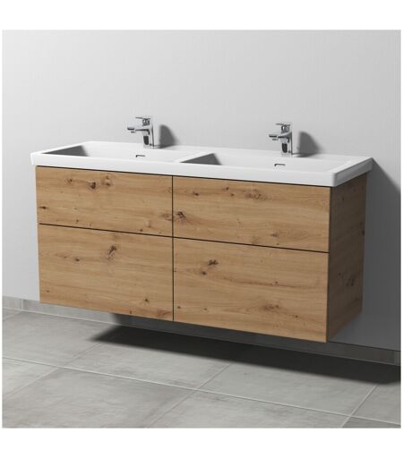 "Sanipa 3way Waschtischunterbau zu Villeroy & Boch Subway 3.0 Waschtisch mit 4 Auszügen, Eiche Natural-Touch 3way Das Bad wird zur Bühne.Sie führen Regie beim Spiel mit Formen, Farben und Größen. Drei Waschtisch-Materialien, drei Arten von Schrankmodellen und drei mögliche Griffvarianten bieten viele Lösungen, um die Geschichte zu einem großen Familienbad oder über ein kleines Gäste-WC zu erzählen. Das durchdachte System von 3way macht mit seinen individuellen Details ein großes Werk möglich. Der Applaus gehört Ihnen. Das bietet 3way: Breite Auswahl an Waschtischen in Größe und im Material mit passendem Unterbau im Set Unterbauten zu zahlreichen Waschtischen verschiedener Hersteller wählbar Grifflose Fronten mit seitlicher Griffleiste zum Öffnen und als Designmerkmal, optional klassisch mit Stangengriff Eleganter Aufsatzgriff oder grifflos mit Push to open Technik Praktische Stauraummöbel mit integriertem Wäschekorb oder Ganzkörperspiegel und Regalelemente Einzelne Beimöbel in zwei verschiedenen Tiefen Produktdetails: Push to open Technik 4 Metall-Vollauszüge Auszüge mit Selbsteinzug für leichten Lauf und sanftes Schließen Auszüge mit rutschhemmendem Boden Obere Auszüge mit eckigem Siphonausschnit Innenfarbe Auszüge: Anthrazit Passender Waschtisch: Villeroy & Boch Subway 3.0 Keramik-Waschtisch, Breite 130,0 cm (4A71 D1/D3/D5) Zusatzinformationen: Waschtisch nicht im Lieferumfang enthalten, bitte separat bestellen Farb- und Strukturabweichungen in den Abbildungen möglich weitere Produktdetails: passend zu: Villeroy & Boch Subway 3.0 4A71D1 / 4A71D3 / 4A71D5 Breite (cm): 125,5 Höhe (cm): 58,8 Tiefe (cm): 46,2 Material Korpus: Spanplatte Material Front: Spanplatte Material Griff: Oberfläche Korpus: Melamin Oberfläche Front: Melamin Farbe Korpus: Eiche Natural-Touch Farbe Griff: Griff: Ohne Griff Öffnungsart: B2Mit Auszug Montage: Wandmontage Montagezustand: Montiert Lieferumfang: Waschtischunterschrank, Befestigung Einbauart Waschtisch: Für Doppelwaschtische Besonderheiten: Mit Push to open Technik Beleuchtung: Ohne Beleuchtung Eingebaute LED: Nein Leuchtmittel: Nein Über den Hersteller Sanipa: Das Unternehmen Sanipa mit Sitz im fränkischen Treuchtlingen ist eine hundertprozentige Tochter der Villeroy & Boch AG und zählt zu den renommierten Partnern für den Sanitär-Fachhandel. Sanipa setzt auf Produkte, die in bester Handwerkstradition hergestellt werden und fortschrittliche Technik mit aktuellem Design verbinden. Die Badmöbel sind ""made in Germany"" und können individuell an Kundenwünsche angepasst werden." ...