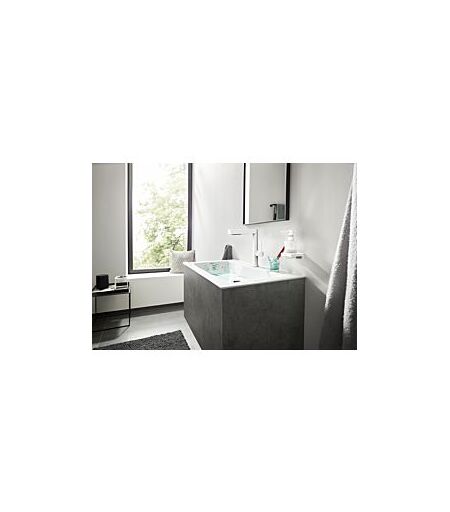 Hansgrohe Finoris 160 3-Loch-Waschtischarmatur 76034700 mit Push-Open Ablaufgarnitur, mattweiß
