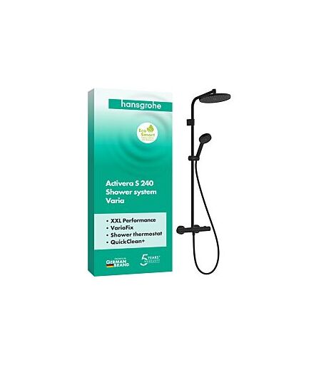 Hansgrohe Activera S Duschsystem 240 28078670 mit Thermostat, 1 Strahlart wassersparend mit Ecostat Fine Varia, 8 l/min, schwarz matt