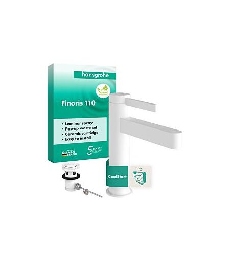 Hansgrohe Finoris Einhebel-Waschtischarmatur 76025700 CoolStart, Ausladung 139mm, mit Zugstange, weiß matt