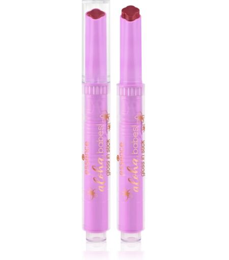 essence aloha, babes! Cremegloss für die Lippen in der Form eines Stiftes Farbton 01 Sunny Bliss, Flower Kiss 1.6 g