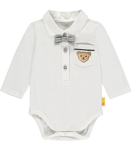 Das ist der Body für jedes Fest. Der Pololangarmbody ist etwas ganz besonderes, er besteht aus weichem Jersey und hat einen edlen Kragen. Die Knopfleiste aus Webware hilft beim An- und Ausziehen. Auf der Brusttasche ist ein kleiner Teddybär Kopf, der Ihren Sohn durch jedes Fest begleitet. Die passende Fliege ist ebenfalls dabei und abnehmbar je nach Lust und Laune. Farbbezeichnung: Weiss Material: 95% Baumwolle 5% Elasthan Material2: 100% Baumwolle ...