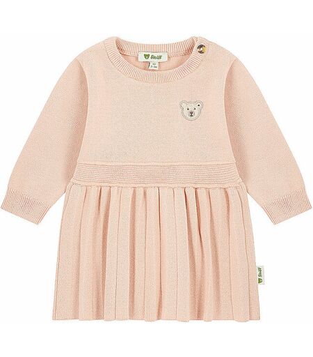 Dieses rosafarbene Strickkleid ist ein hinreißender Begleiter für kleine Stilikonen. Aus weichem Baumwollstrick gefertigt, sorgt es für angenehme Wärme und hohen Tragekomfort. Der fein gerippte Rundhalsausschnitt sowie die Ärmelabschlüsse unterstreichen die klassische Silhouette. Raffinierte Falten legen sich sanft um das Rockteil und schenken dem Design eine verspielte Note. Praktische Knöpfe an der Schulter erleichtern das An- und Ausziehen. Auf der Brust rundet das klassische Steiff Teddybärmotiv das Design liebevoll ab – für Geborgenheit von Anfang an. Farbbezeichnung: Rosa Material: 100 % Baumwolle ...