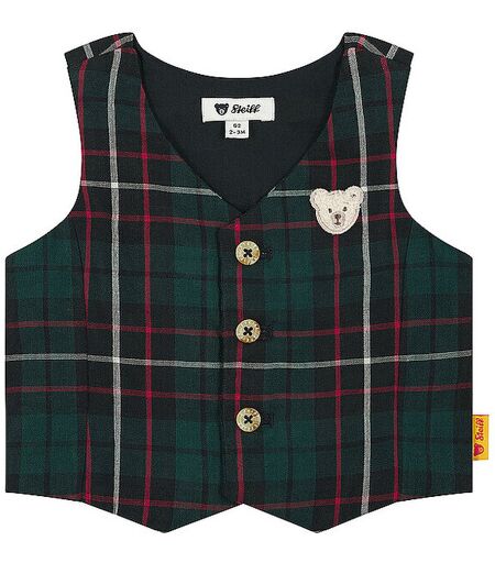 Diese karierte Weste aus weichem Flanell verleiht kleinen Gentlemen einen stilvollen Auftritt mit hohem Tragekomfort. Das klassische Design in Dunkelblau mit kontrastierendem Karomuster wird durch eine durchgehende Knopfleiste und einen leicht taillierten Schnitt ergänzt. Ein weiches Futter sorgt für angenehmes Wohlgefühl auch an besonderen Tagen. Auf der Brust setzt das Steiff Teddybärmotiv einen charmanten Akzent – ein festliches Lieblingsstück für stilbewusste Charmeure. V-Ausschnitt Ohne Arm Schließt mit Knopfleiste Karomuster Logopatch auf der Brust OEKO-TEX® STANDARD 100 certified by Hohenstein HTTI Label no. 23.HDE.52407 Farbbezeichnung: Navy Material: 100% Baumwolle ...