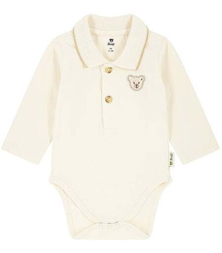 Ein echter Hingucker für kleine Entdeckerfreunde: Dieser Langarmbody mit stilvollem Polokragen verbindet sportliches Design mit kuscheligem Komfort. Der weiche Single Jersey in Beige liegt angenehm auf der Haut und bietet genügend Bewegungsfreiheit für aktive Babys. Knöpfe an der Vorderseite sowie praktische Druckknöpfe im Windelbereich erleichtern das An- und Ausziehen. Auf der Brust rundet das klassische Steiff Teddybärmotiv das Design charmant ab – ein Lieblingsstück mit Wohlfühlfaktor. Polokragen mit kurzer Knopfleiste Langarm Unifarben Farbbezeichnung: Ecru Material: 95 % Baumwolle 5% Elasthan ...