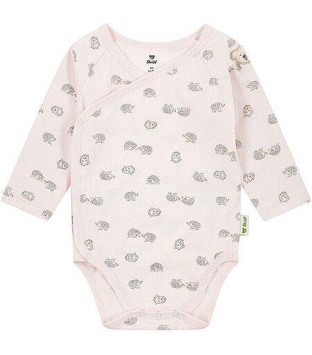 Weich, praktisch und einfach goldig – dieser langärmelige Wickelbody bietet komfortables Anziehen für kleine Weltentdecker und Weltentdeckerinnen. Der zarte Allover-Print mit kleinen Igeln sorgt für verspielte Akzente und macht den Body zu einem besonderen Hingucker im Alltag. Dank seitlicher Druckknopfleiste und Druckknöpfen im Schrittbereich gelingt das An- und Ausziehen kinderleicht. Hergestellt aus angenehmem Single Jersey, bietet der Body sanften Tragekomfort auf zarter Babyhaut. Auf dem Ärmel sorgt das klassische Steiff Teddybärmotiv für ein liebevolles Detail und ein Gefühl von Geborgenheit. Farbbezeichnung: Rosa Material: 100 % Baumwolle ...