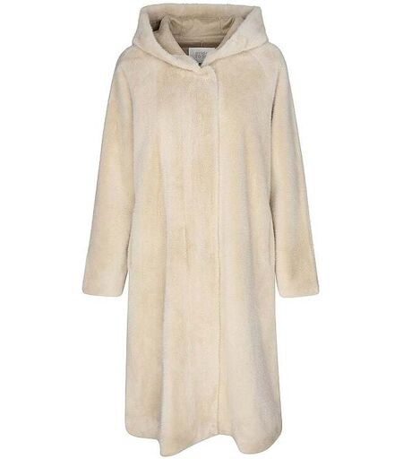 Damen Mantel aus weichem Kunstfell Kapuze Schließt mit verdecktem Zwei-Wege-Reißverschluss und Druckknopfleiste Lange Ärmel Seitliche Eingrifftaschen Gerade Passform Länge: Ca. 103 cm Unifarben Farbbezeichnung: Sand Material: 100% Polyester ...