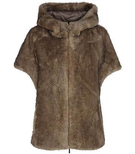 Modische Damen Jacke in weicher Felloptik Stehkragen mit Kapuze Schließt mit Zwei-Wege-Reißverschluss Ohne Arm Seitliche Eingrifftaschen Lockere Passform Unifarben Farbbezeichnung: Moka Material: 100% Polyester ...