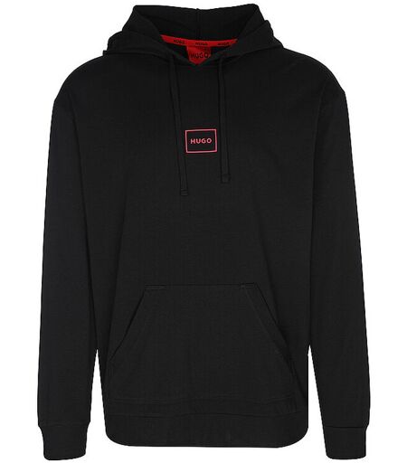Ein markentypischer Hoodie von HUGO, gefertigt aus elastischem Jersey. In entspannter Passform geschnitten, zeigt dieses Modell ein aufgedrucktes Logo auf der Brust. Dieses Produkt besteht teilweise aus biologischer Baumwolle, die ohne synthetische Düngemittel, Pestizide oder gentechnisch verändertes Saatgut angebaut wird. Herren Sweater aus Baumwoll-Stretch Kapuze mit Tunnelzug Langarm Logo-Print im Vorderteil Rippbündchen an Ärmel- und Saumabschluss Lockere Passform Farbbezeichnung: Black Material: 95% Baumwolle, 5% Elasthan ...