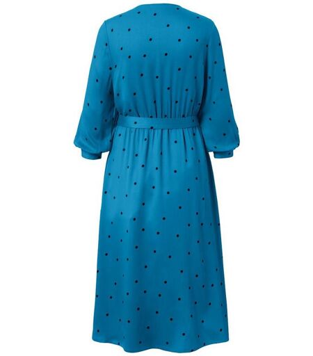 Gepunktetes Webkleid Farbe: Azurblau mit dunkelblauen Punkten Material: 100% Viskose (LENZING™ ECOVERO™) Maße: Gesamtlänge ca. 121 cm (Gr. 40) Passform: Regular Fit Hochwertige, reine ViskoseElastisches Bündchen und Bindegürtel auf Taillenhöhe Wickeloptik mit V-AusschnittSaum mit SeitenschlitzenDieses Kleid beinhaltet Fasern aus nachhaltigem Holz. ...