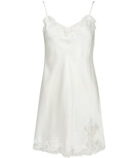 Edel glänzendes Kleidchen aus reiner SeideAngenehmes TragegefühlV-AusschnittLängenverstellbare SpaghettiträgerKurz geschnittenVerführerische SpitzendetailsUnifarbenFarbe: Ivory Material: 100% Seide ...
