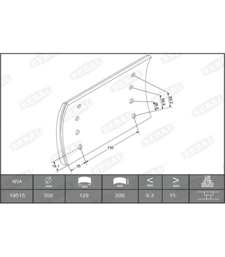Bohrbild/lochzahl: 8. Breite [mm]: 200. Bremsbelag: mit Sichelbelag, 1.Übermaß, 1.Übermaß. Dicke/stärke 1 [mm]: 16,80. Dicke/stärke 2 [mm]: 16. Gewicht [kg]: 6,60. Hersteller: BERAL. Herstellernummer: KBL19515.1-1541. Index: KBL19515.1-1541. Länge außen [mm]: 141, 146. Länge innen [mm]: 127, 132. Nietanzahl pro belagsatz: 64. Nietart: 8x18. Prüfzeichen: E9-90R-02.B1073/2417, E9-90R-02.B1073/2417. Qualität: 1541. Radius [mm]: 148. Trommeldurchmesser: 300. ...