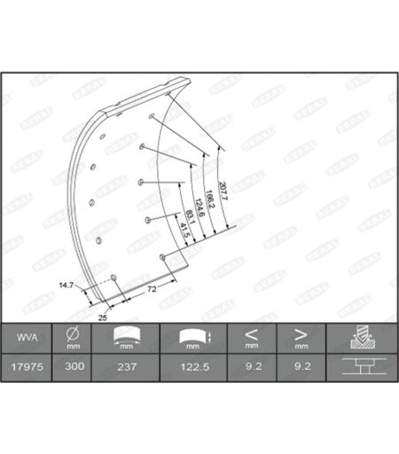 Bohrbild/lochzahl: 14/12. Breite [mm]: 122. Bremsbelag: Standardmaß. Dicke/Stärke [mm]: 9,30. Gewicht [kg]: 2,10. Hersteller: BERAL. Herstellernummer: KBL17351.0-1561. Index: KBL17351.0-1561. Länge außen [mm]: 254, 283. Länge innen [mm]: 237, 264. Montageseite: Hinterachse. Nietanzahl pro belagsatz: 52. Nietart: 6x12. Prüfzeichen: E9-90R-02B1058/3434, E9-90R-02B1058/3434. Qualität: 1561. Radius [mm]: 140. Trommeldurchmesser: 300. Verschleißwarnkontakt: für Verschleißwarnanzeiger vorbereitet, für Verschleißwarnanzeiger vorbereitet. ...
