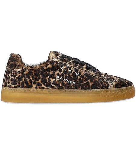 Damen Sneaker aus Leder Overlay-Design Gepolsterter Schaftrand Hochgezogene Hinterkappe Gepolsterte Zunge Herausnehmbare Innensohle Gerundete Spitze Rutschhemmende Außensohle Animal Design Farbbezeichnung: Hairy Leather Leo Material: Leder Die Marke Copenhagen ist Mitglied der Fair Wear Foundation. ...
