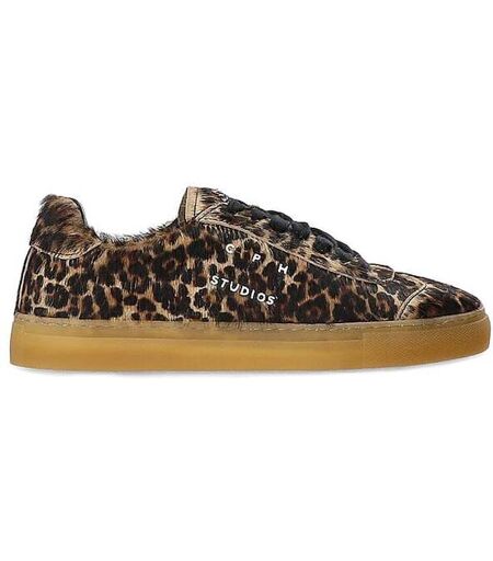 Damen Sneaker aus Leder Overlay-Design Gepolsterter Schaftrand Hochgezogene Hinterkappe Gepolsterte Zunge Herausnehmbare Innensohle Gerundete Spitze Rutschhemmende Außensohle Animal Design Farbbezeichnung: Hairy Leather Leo Material: Leder Die Marke Copenhagen ist Mitglied der Fair Wear Foundation. ...