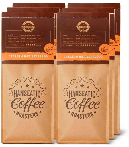 Hanseatic - Italian Bar Espresso - 6x 1 kg Ganze Bohne - Intensität: 6/6