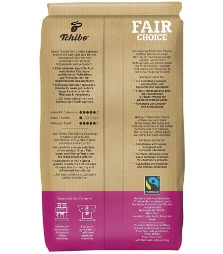 Tchibo - Fair Choice Espresso - 6x 1 kg Ganze Bohne - Intensität: 5/6